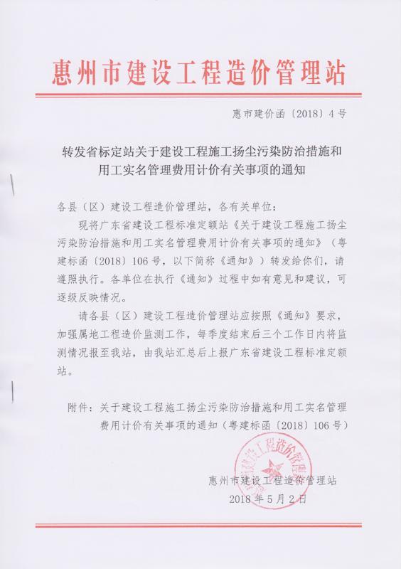 附件:關(guān)于建設(shè)工程施工揚塵污染防治措施和用工實名管理費用計價有關(guān)事項的通知(粵建標函〔2018〕106號)